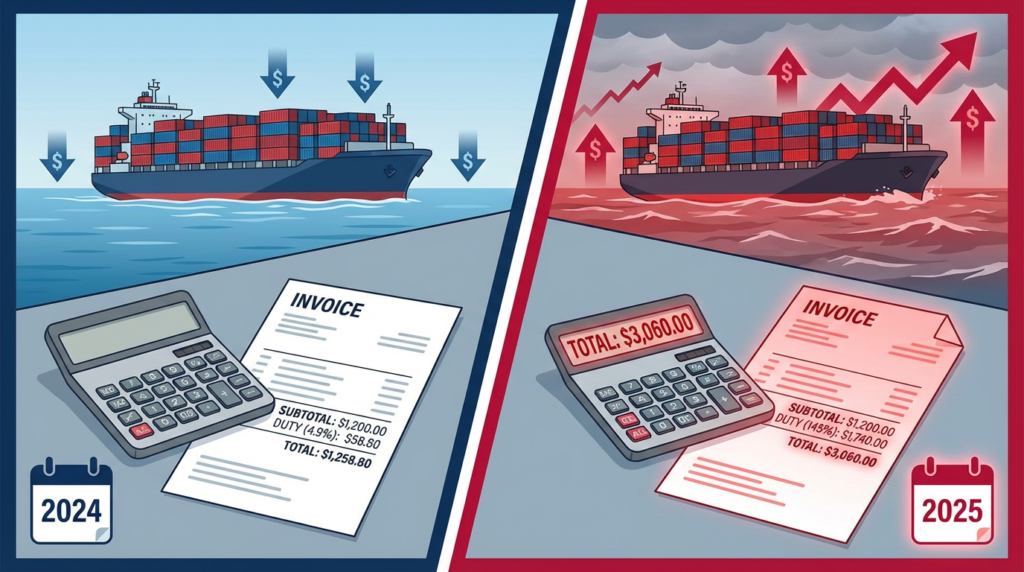 Les droits de douane américains sur les produits chinois pouvant atteindre 145% dans 2026, le calcul du coût au débarquement a radicalement changé. Voici ce que vous devez recalculer: