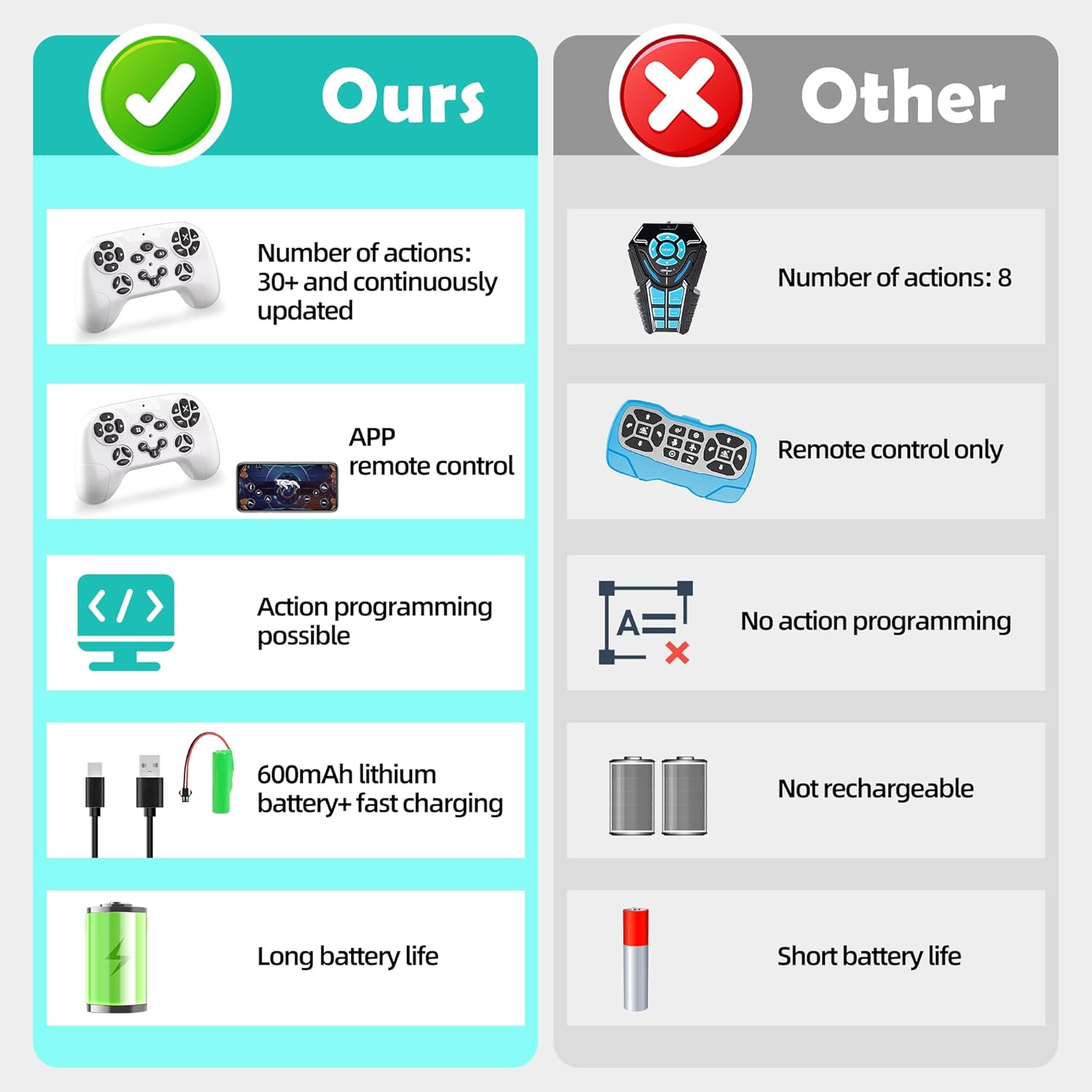 STEM Learning & Custom Programming: Spark creativity with coding mode! Kids can design custom action sequences, building logic skills while playing-an ideal gateway to robotics for ages 6-12.