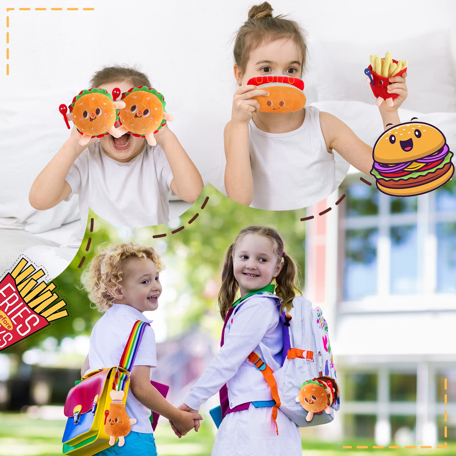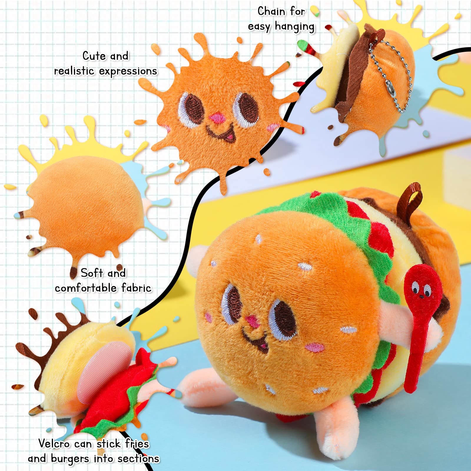 - Ingenious Hook and Loop Fasteners Design: our food plush toy set is made of quality plush, and the interior is filled with PP cotton, safe and soft, comfortable to hold, not easy to fade or break; The clever hook and loop fasteners design is fun, which can divide the hamburger into 3 layers and divide the fries into 2 layers, and stick them together in the middle; Please note that these plushies are vacuum packed, and you can pat to restore the appearance