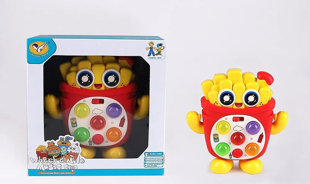 Funny Food Design & Color Learning-Adorable burger and fries shape makes babies feel familiar and happy. 5 colorful light-up buttons flash with music to enhance color cognition and visual interest.