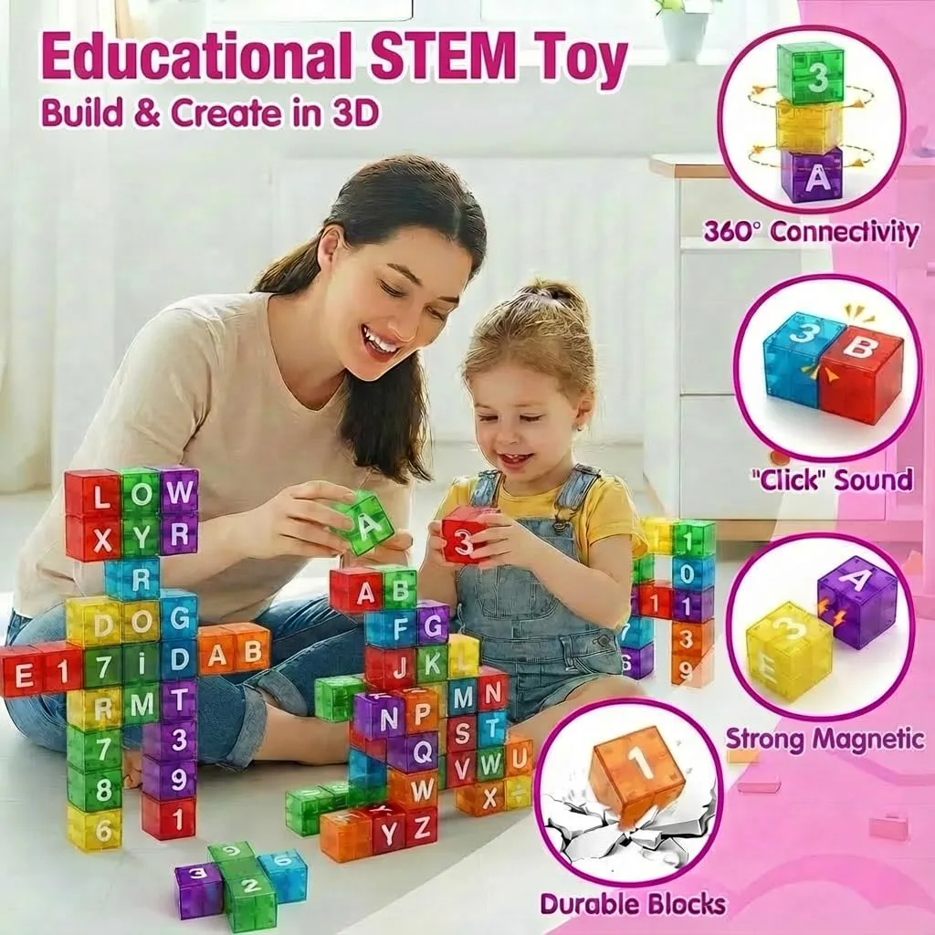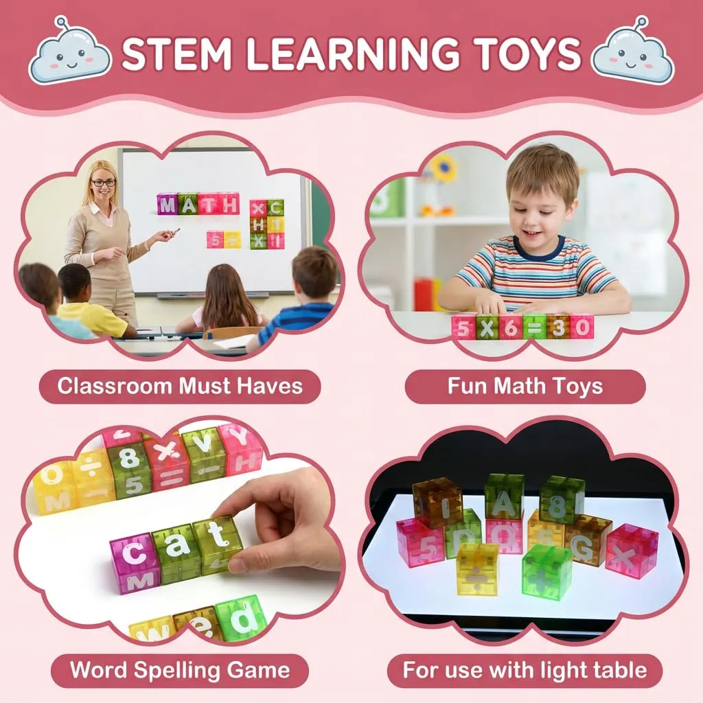 Phonics & Early Math: Features 26 letters, 10 numbers, and 4 symbols. Kids can build words and solve basic equations, fostering literacy and STEM skills through engaging, screen-free learning.
