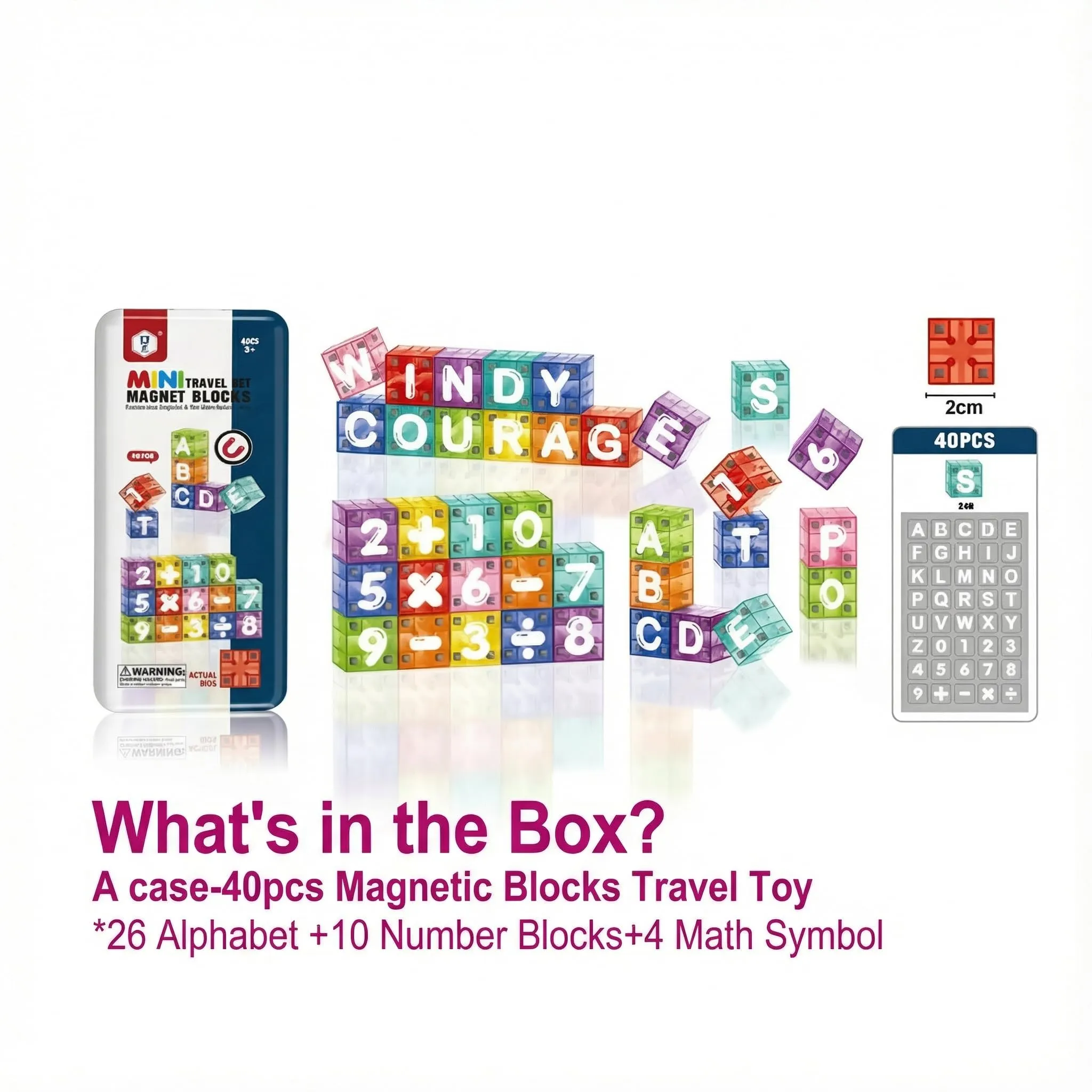 Mini Travel Alphabet Numbers Learning Toys Portable STEM Montessori Toddler Tin Box Set 40Pcs Magnetic Building Blocks