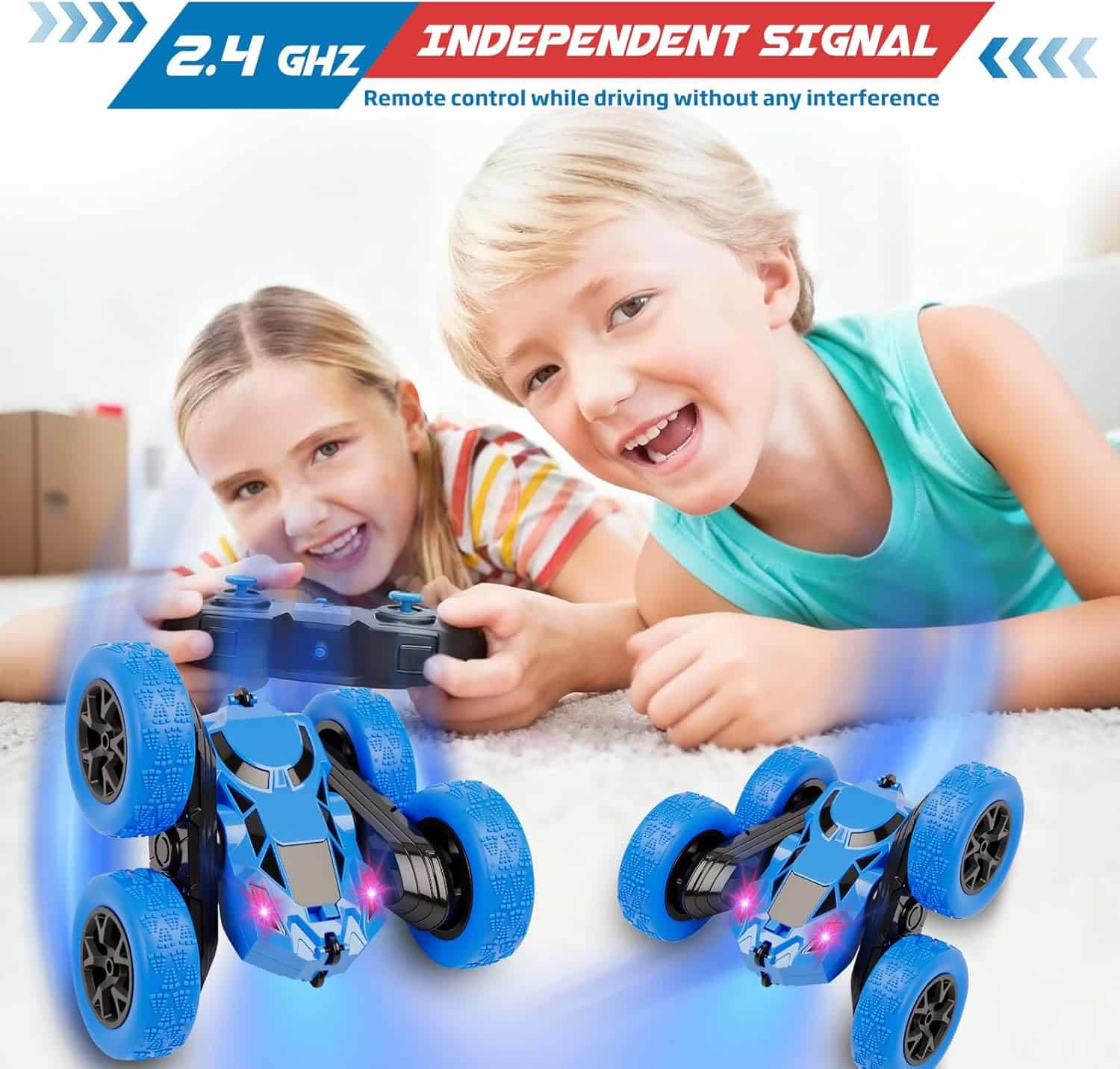 Ideal Gift for Kids—This complete RC stunt car set includes everything needed for endless fun: 1 car, 1 remote, 2 modular batteries, a USB-C cable, 2 AA batteries, and a screwdriver. Gifts for boys 8-12 8-10 3-5 5-7 4-6 4-8 6-8, it is the perfect gift for birthdays, Christmas
