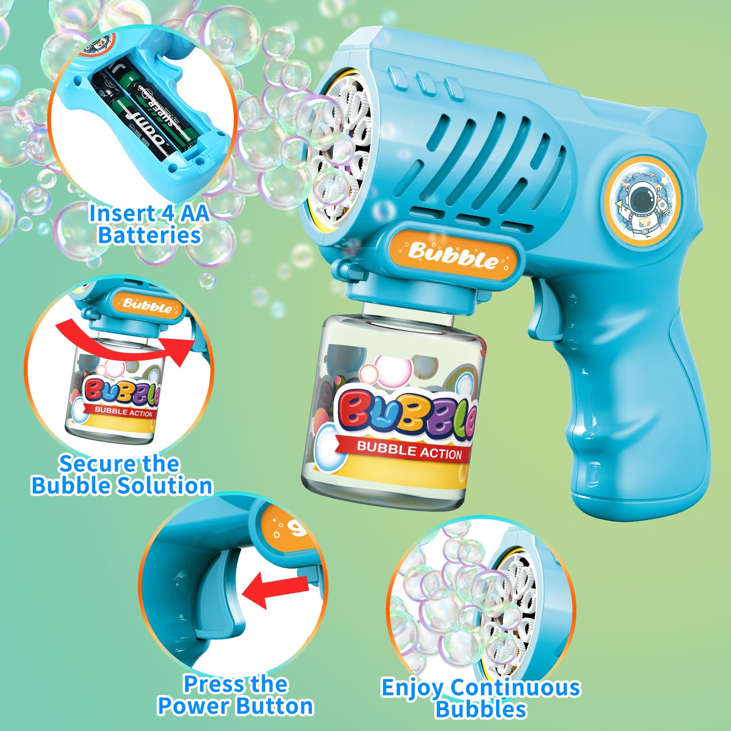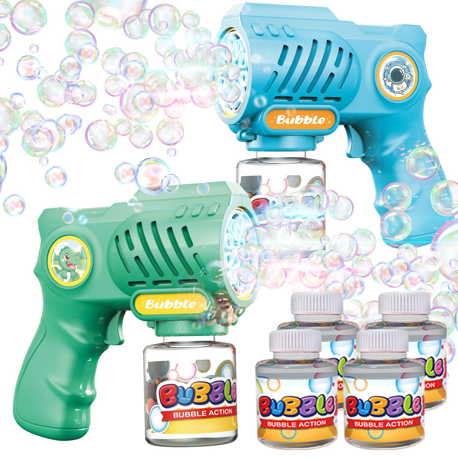 10,000+ Bubbles Every Minute-Equipped with strong motors, these bubble guns blow 10,000+ bubbles per minute, instantly turning any backyard, park, or party into a bubble paradise. Great bubble machine toy for outdoor play and parties