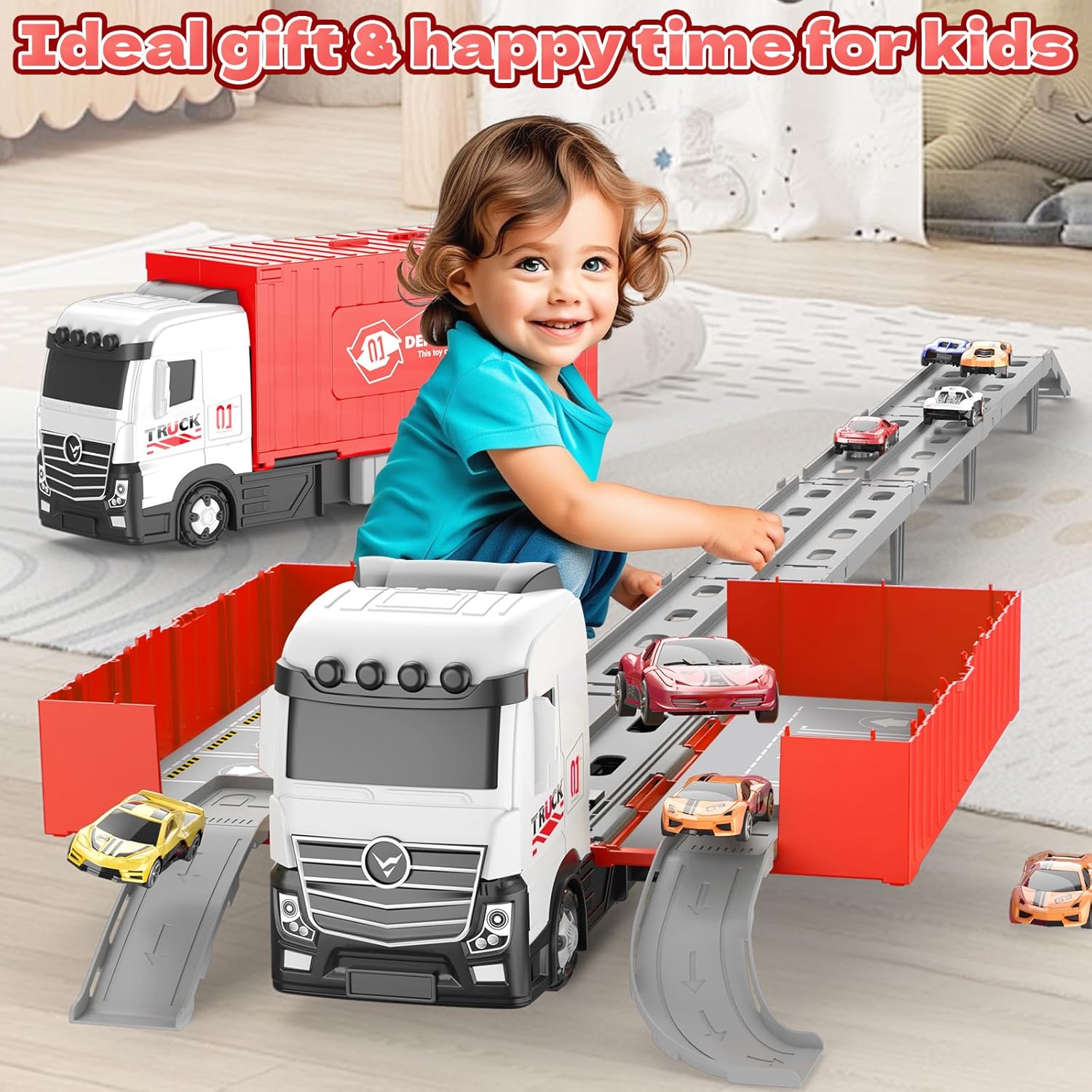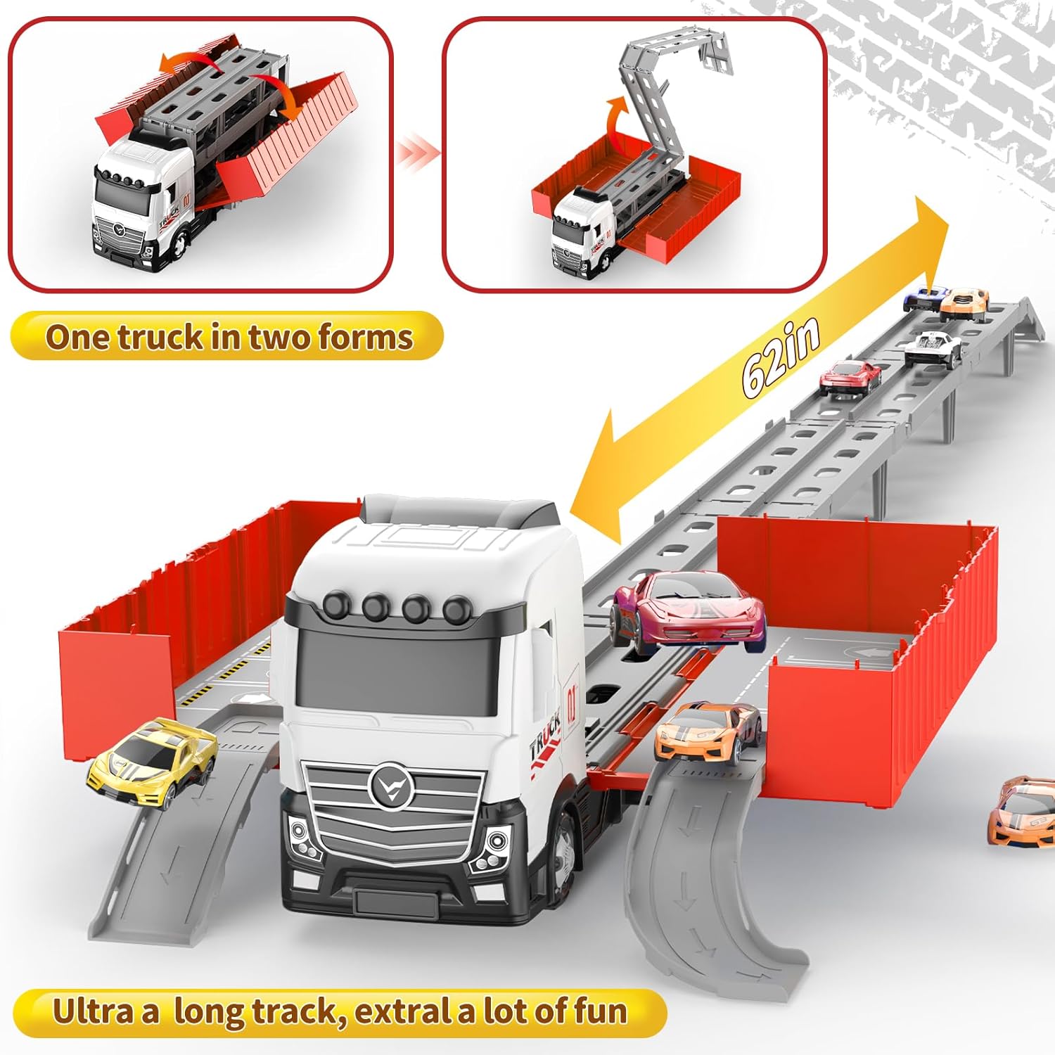 * 【Open-Ended Play & Family Bonding Opportunities】Reconfigure tracks for solo challenges or multiplayer races. The realistic truck design with mechanical details sparks STEM curiosity and family bonding through creative play