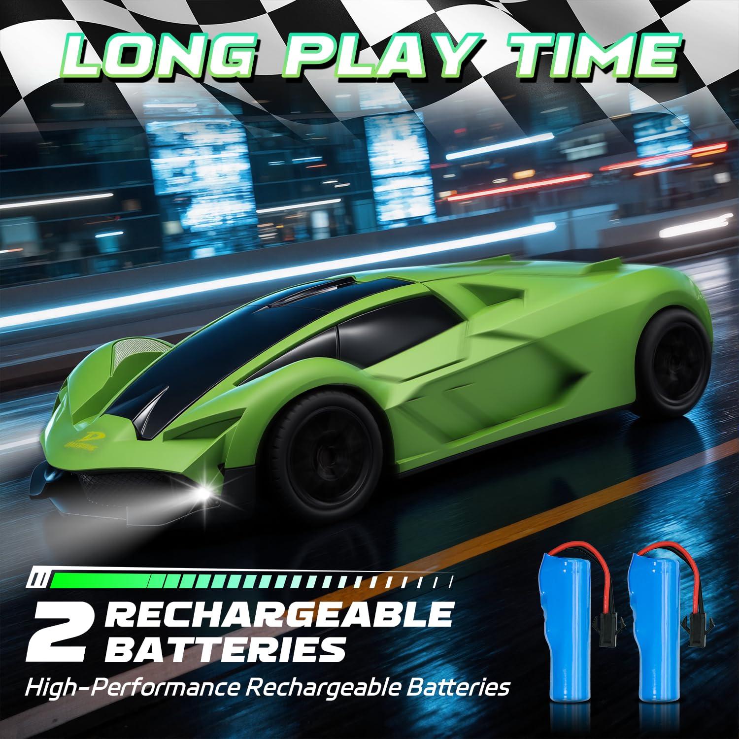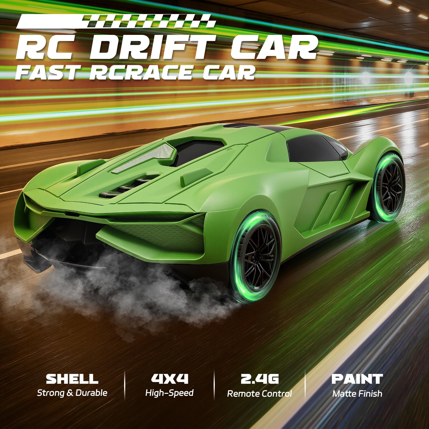 Gift Idea: 1:20 scale RC drift car with cool LED lights, perfect for birthdays, Christmas, or New Year celebrations. It is a surprise gift for kids who are interested in cars and remote-control toys. Providing endless fun and suitable for outdoor play.